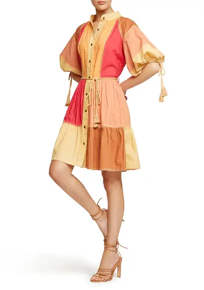 LA STRADA FLORAL PRINT AUTUMN LEAVES TIERED SILK DRESS LSD21-901-140